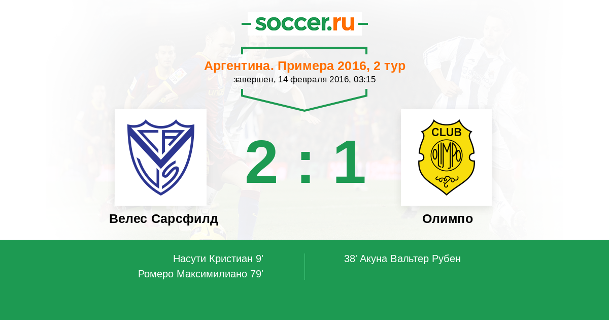 Велес Сарсфилд - Олимпо: обзор матча 14 февраля 2016