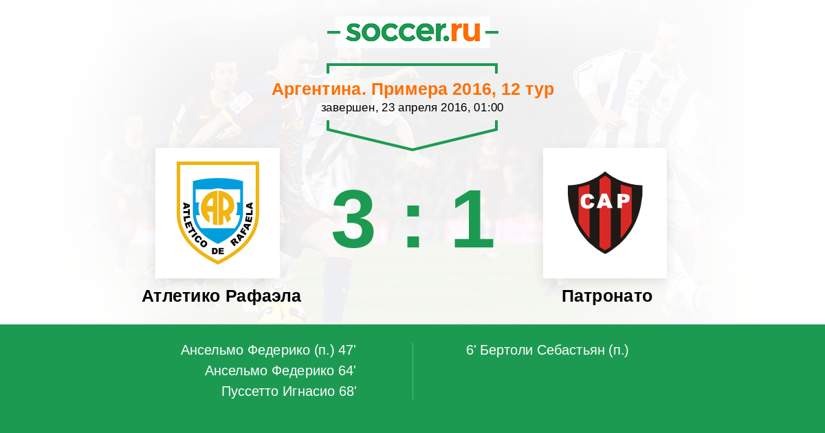 Атлетико Рафаэла - Патронато: обзор матча 23 апреля 2016