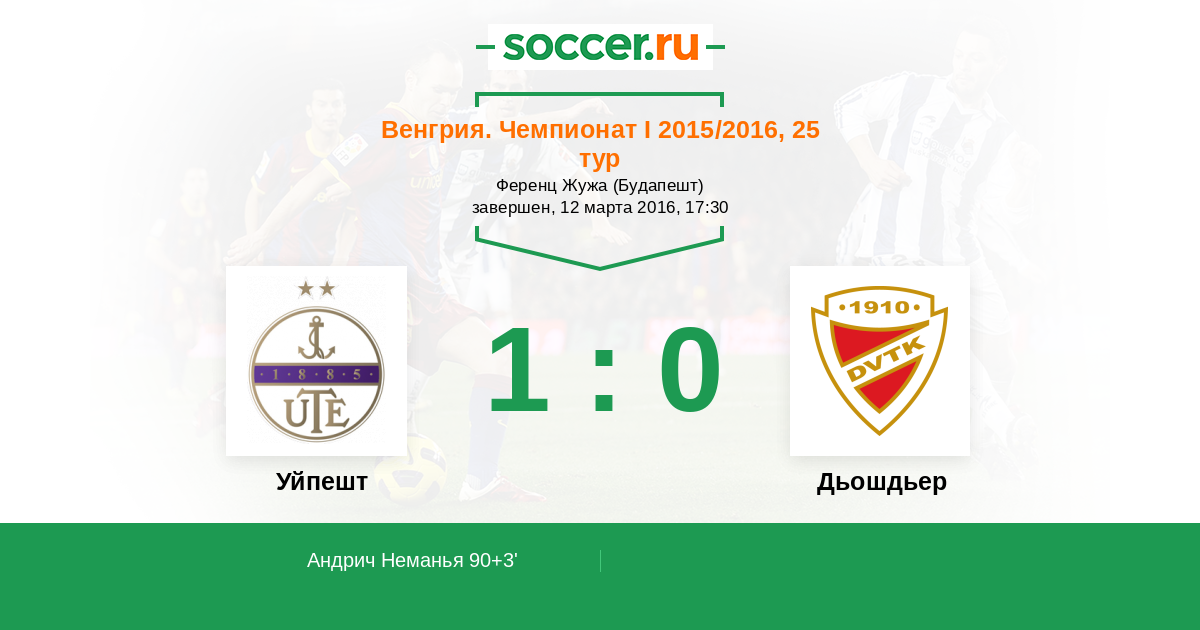 Уйпешт - Дьошдьер: обзор матча 12 марта 2016