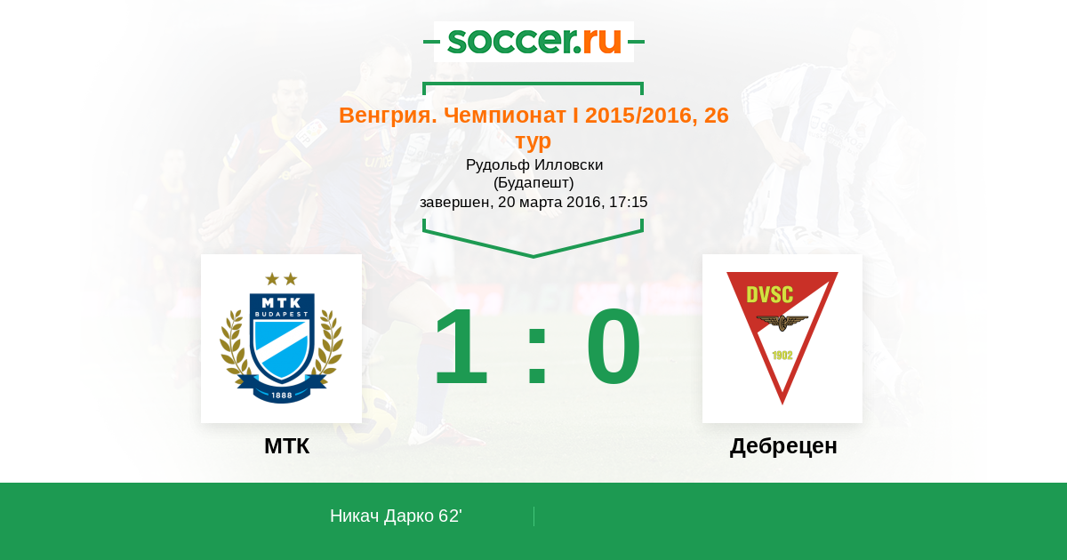 МТК - Дебрецен: обзор матча 20 марта 2016