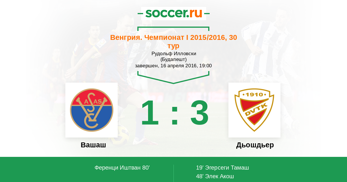 Вашаш - Дьошдьер: обзор матча 16 апреля 2016