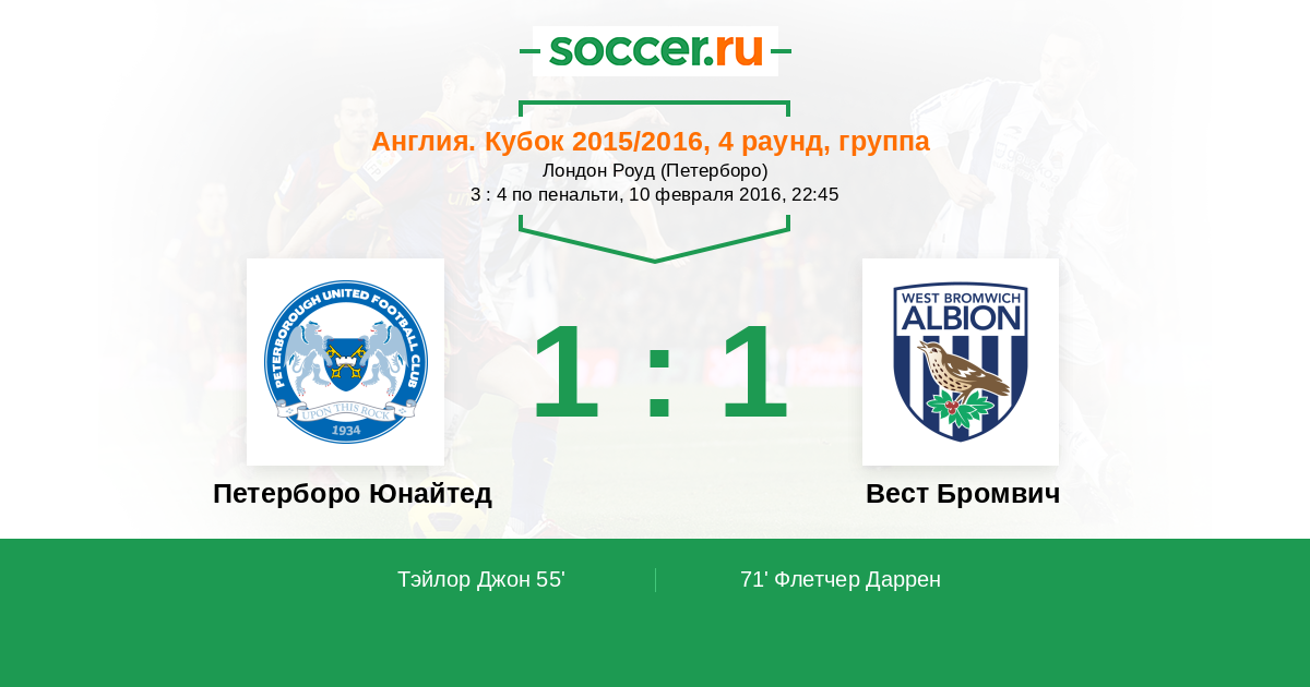 Петерборо Юнайтед - Вест Бромвич: обзор матча 10 февраля 2016