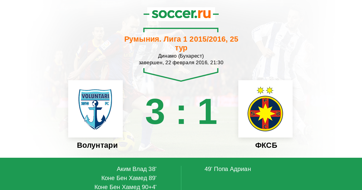 Волунтари - Стяуа: обзор матча 22 февраля 2016