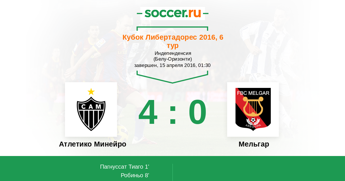 Атлетико Минейро - Мельгар: обзор матча 15 апреля 2016