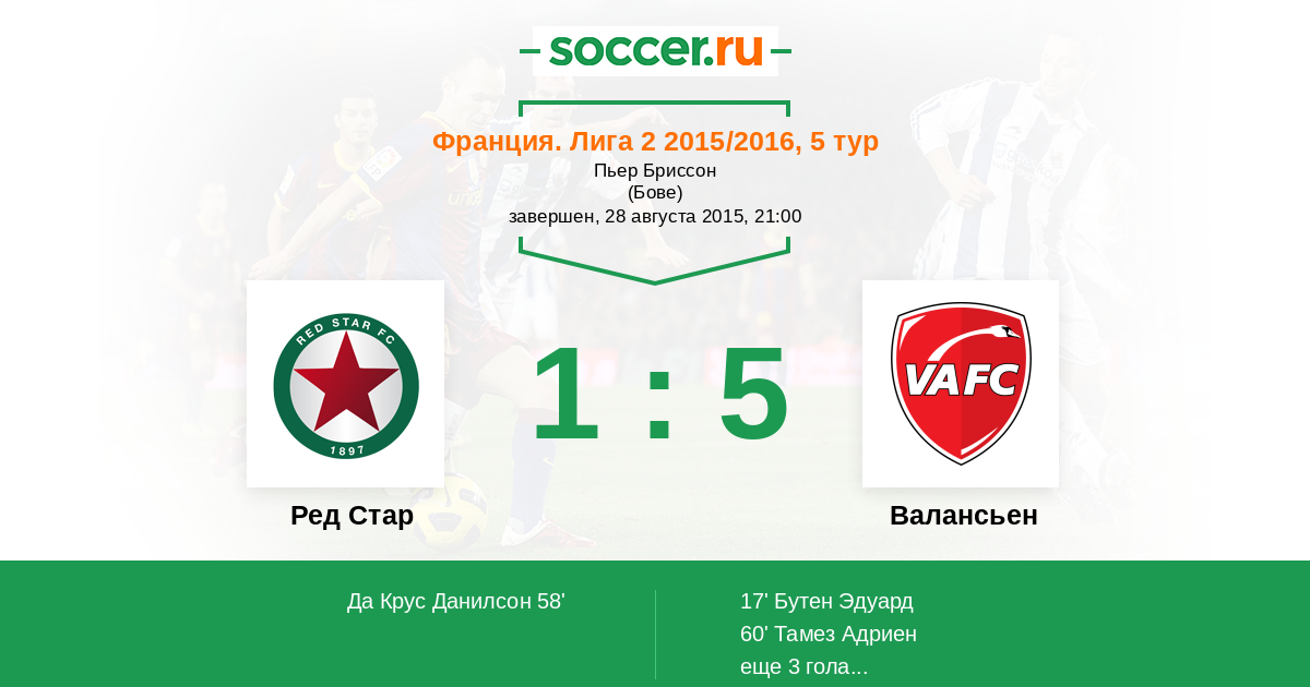 Ред Стар - Валансьен: обзор матча 28 августа 2015