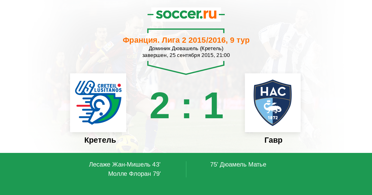 Кретель - Гавр: обзор матча 25 сентября 2015