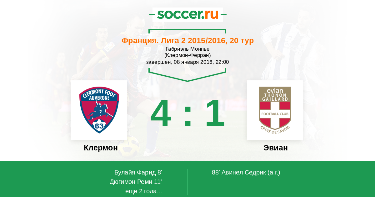 Клермон - Эвиан: обзор матча 8 января 2016