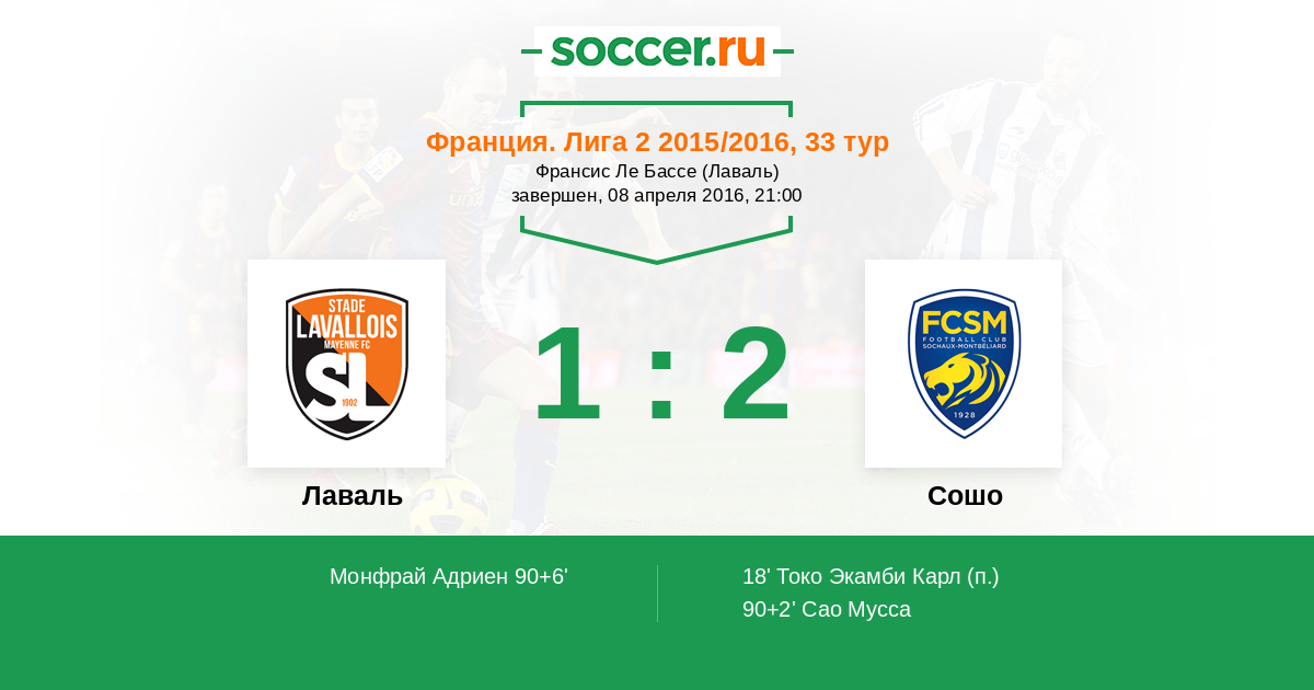 Лаваль - Сошо: обзор матча 8 апреля 2016