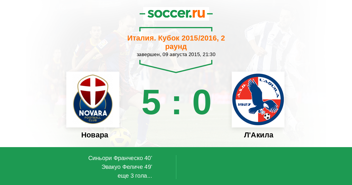 Новара - Л'Акила: обзор матча 9 августа 2015