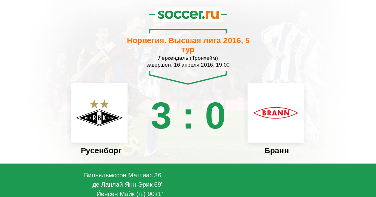 Русенборг - Бранн: обзор матча 16 апреля 2016