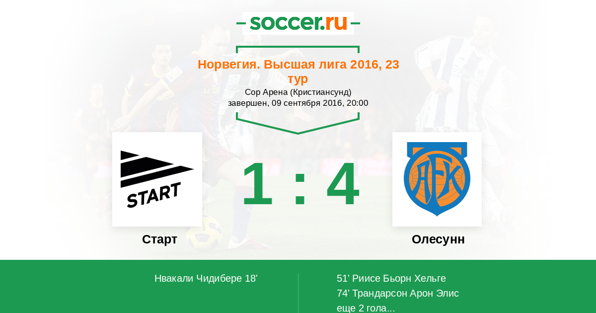 Старт - Олесунн: обзор матча 9 сентября 2016