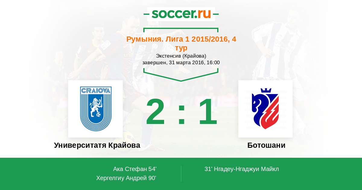 Университатя Крайова - Ботошани: обзор матча 31 марта 2016