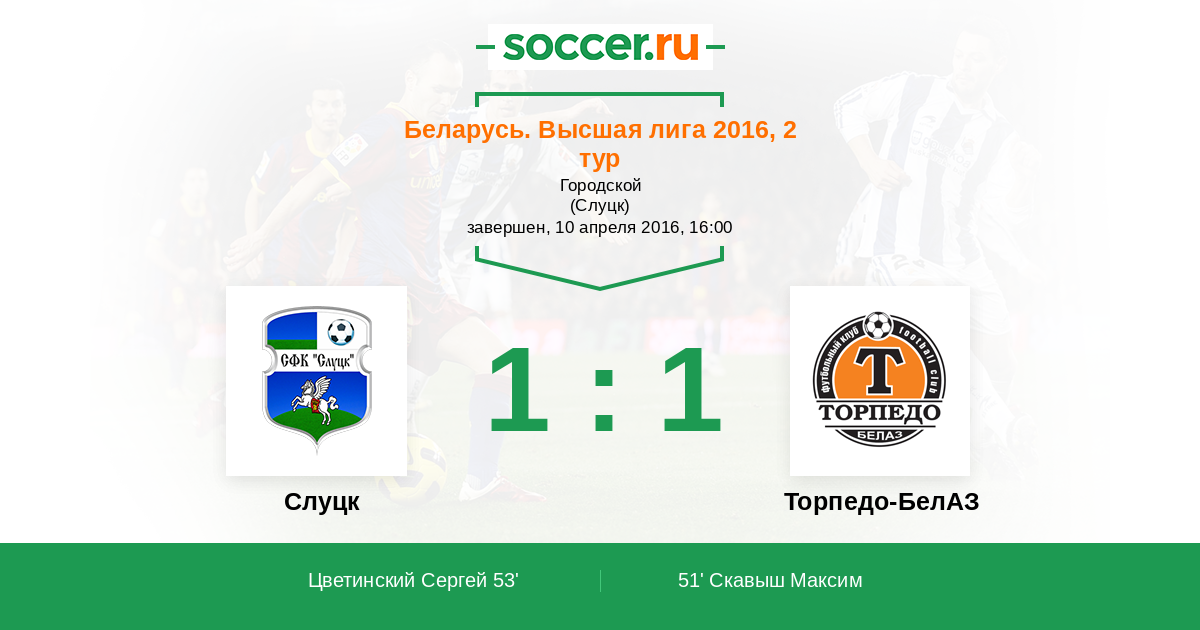 Слуцк - Торпедо-БелАЗ: обзор матча 10 апреля 2016