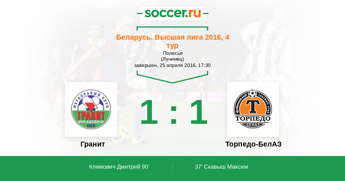 Гранит - Торпедо-БелАЗ: обзор матча 25 апреля 2016