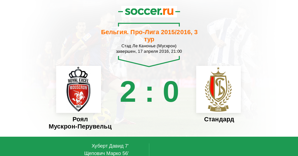 Роял Мускрон-Перувельц - Стандард: обзор матча 17 апреля 2016