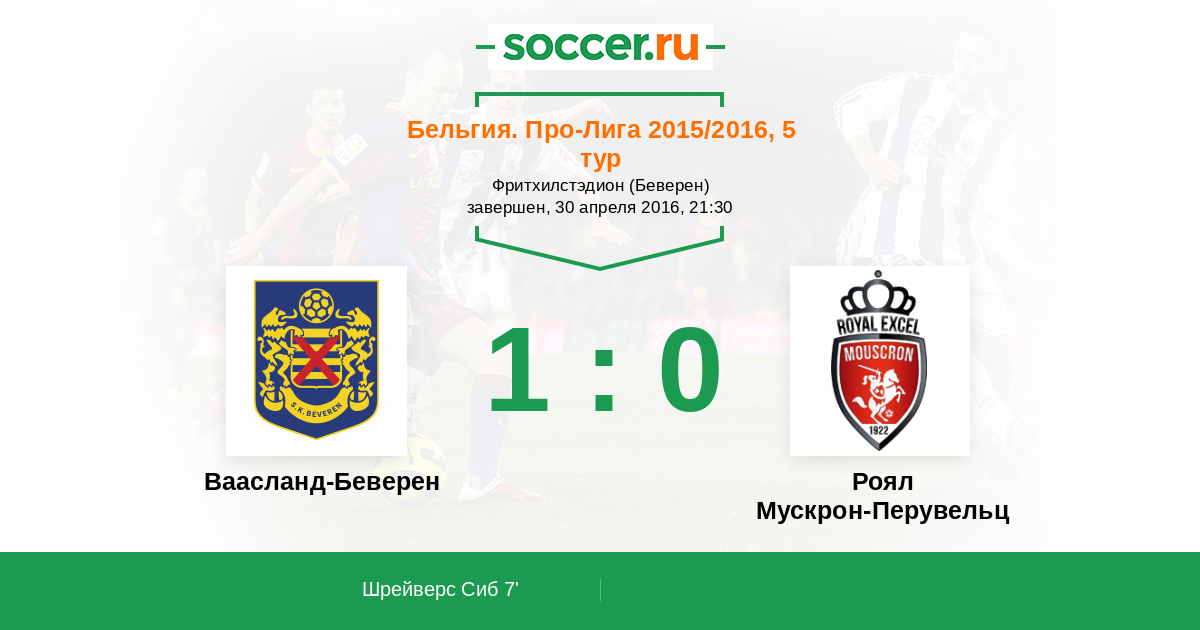 Ваасланд-Беверен - Роял Мускрон-Перувельц: обзор матча 30 апреля 2016