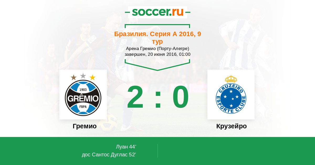 Гремио - Крузейро: обзор матча 20 июня 2016