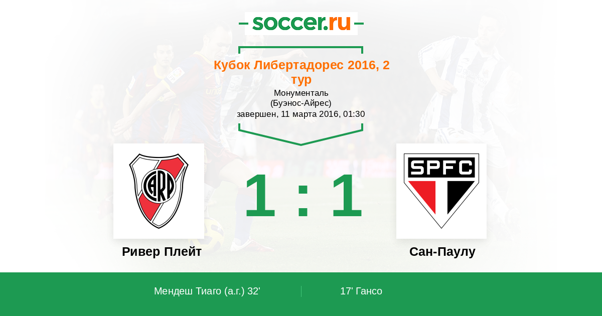 Ривер Плейт - Сан-Паулу: обзор матча 11 марта 2016