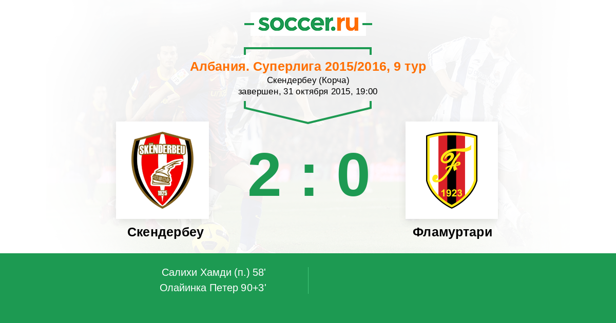 Скендербеу - Фламуртари: обзор матча 31 октября 2015