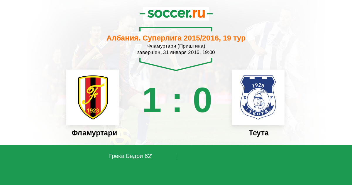 Фламуртари - Теута: обзор матча 31 января 2016
