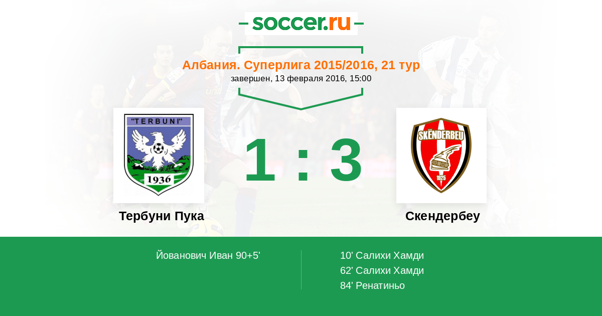Тербуни Пука - Скендербеу: обзор матча 13 февраля 2016