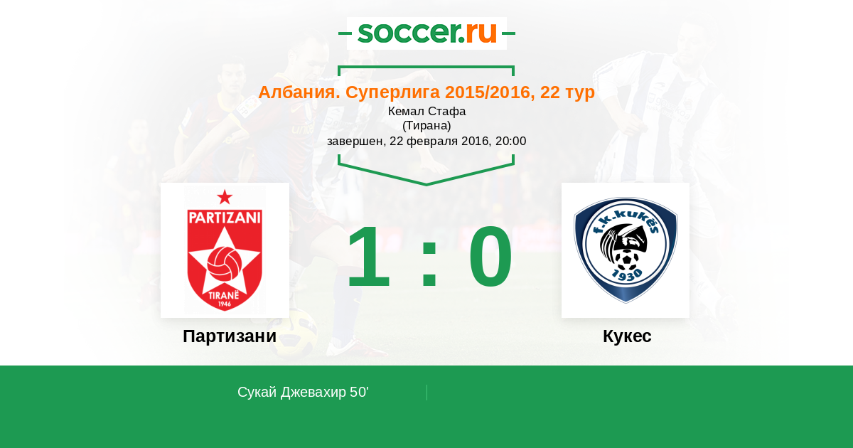 Партизани - Кукес: обзор матча 22 февраля 2016