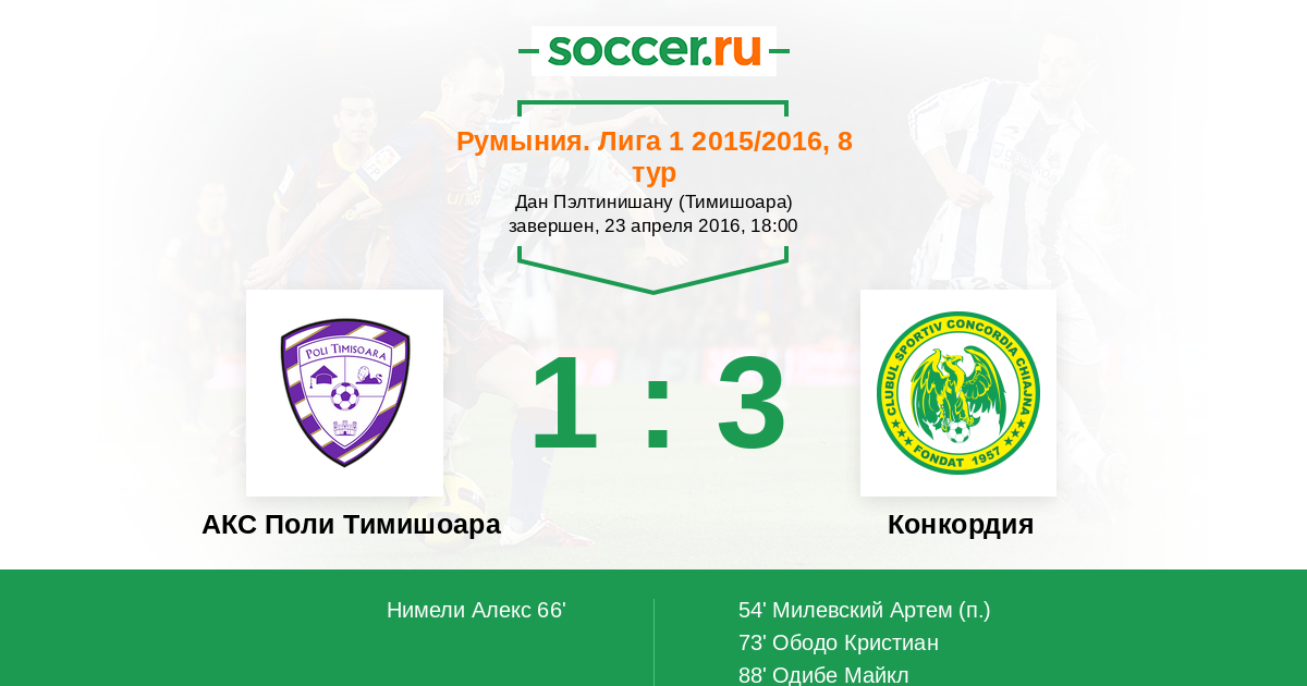 АКС Поли Тимишоара - Конкордия: обзор матча 23 апреля 2016