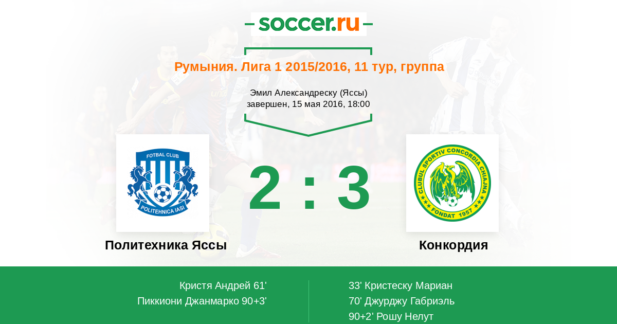 Политехника Яссы - Конкордия: обзор матча 15 мая 2016