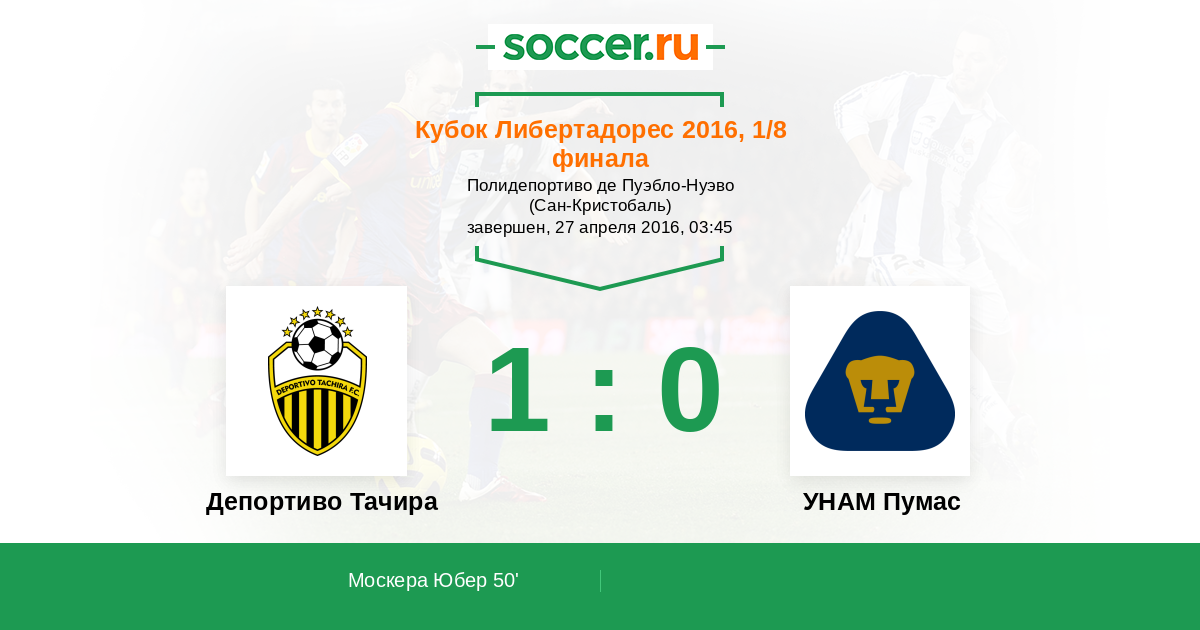Депортиво Тачира - УНАМ Пумас: обзор матча 27 апреля 2016