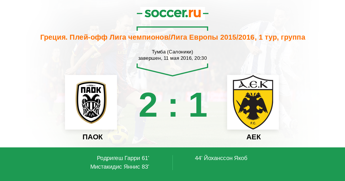 ПАОК - АЕК: обзор матча 11 мая 2016