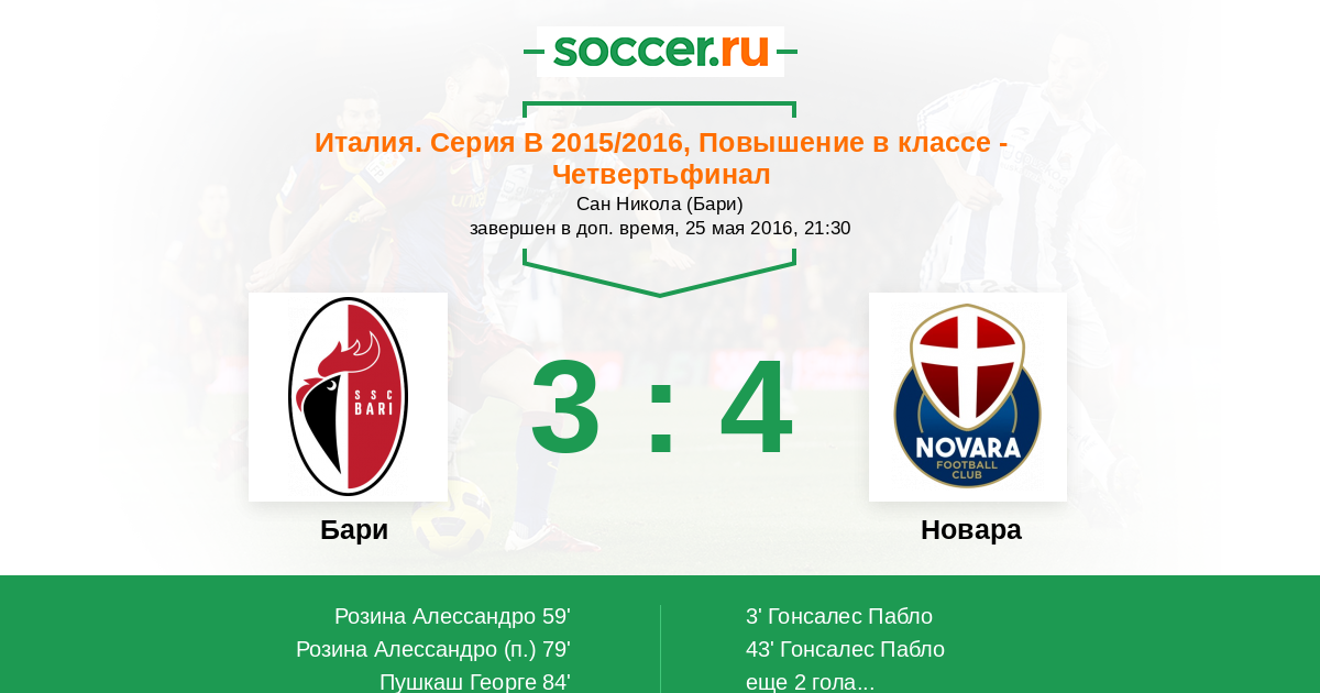Бари - Новара: обзор матча 25 мая 2016