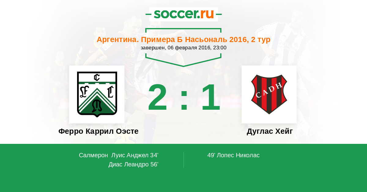 Ферро Каррил Оэсте - Дуглас Хейг: обзор матча 6 февраля 2016