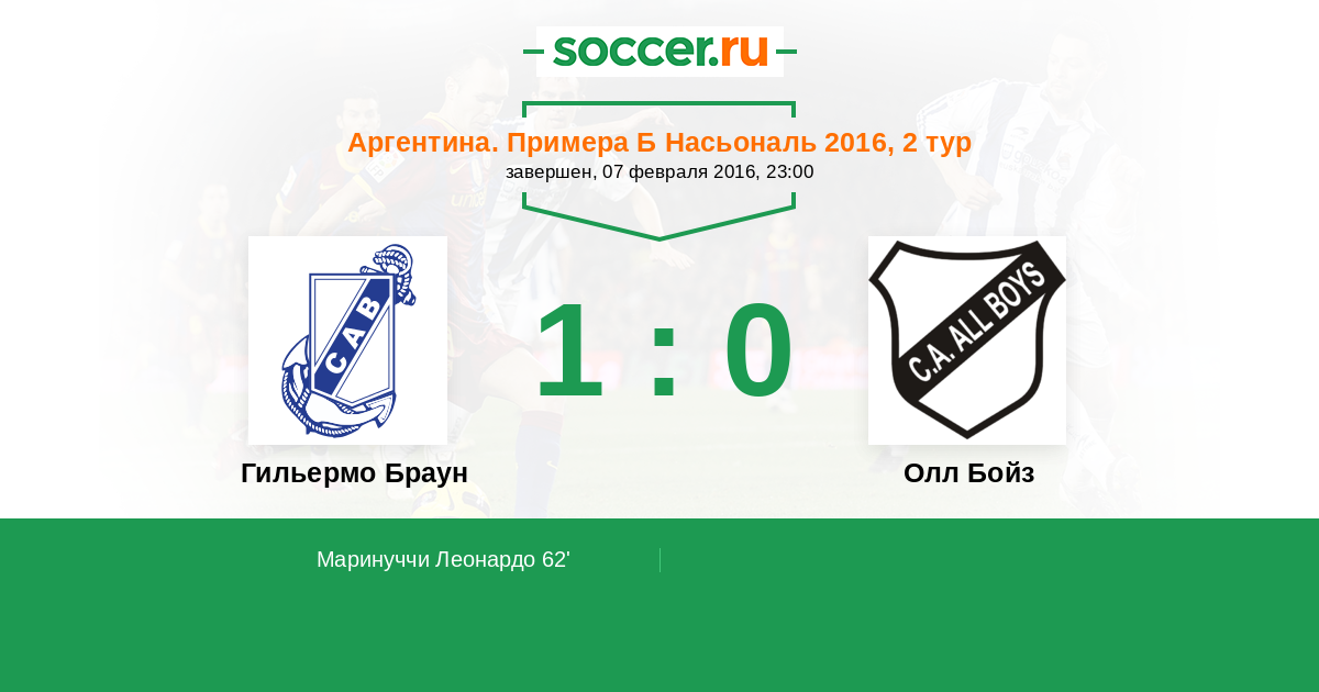 Гильермо Браун - Олл Бойз: обзор матча 7 февраля 2016