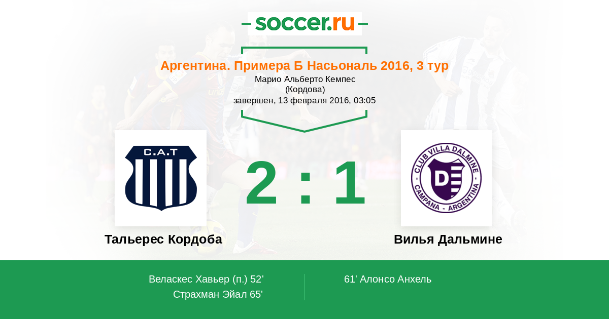 Тальерес Кордоба - Вилья Дальмине: обзор матча 13 февраля 2016