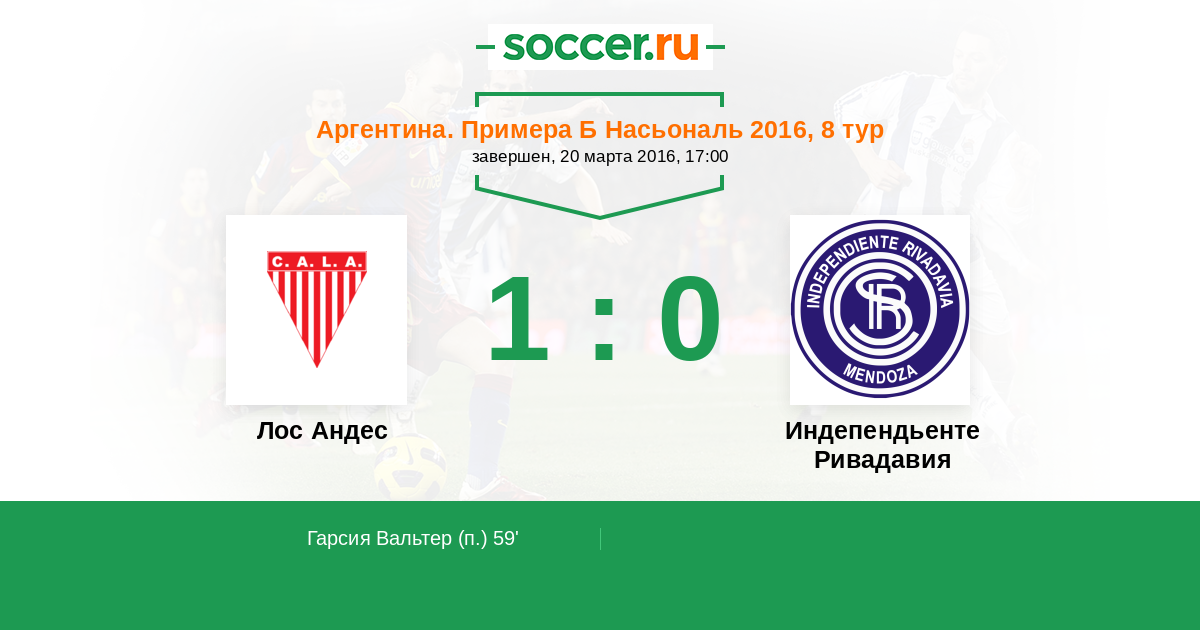 Лос Андес - Индепендьенте Ривадавия: обзор матча 20 марта 2016