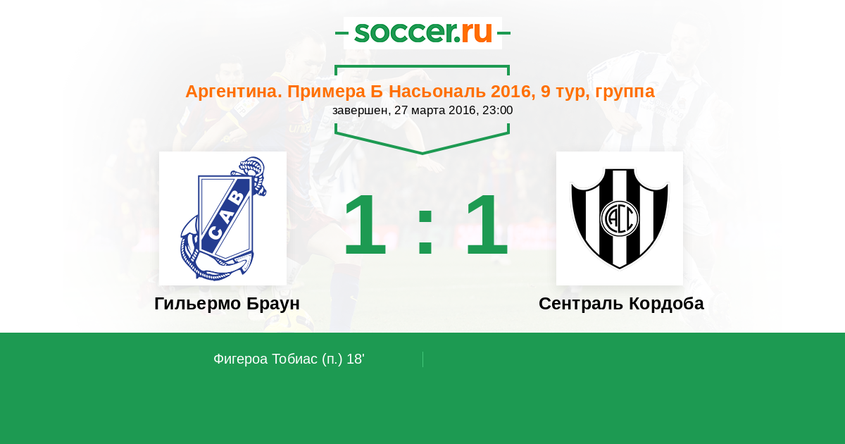 Гильермо Браун - Сентраль Кордоба: обзор матча 27 марта 2016