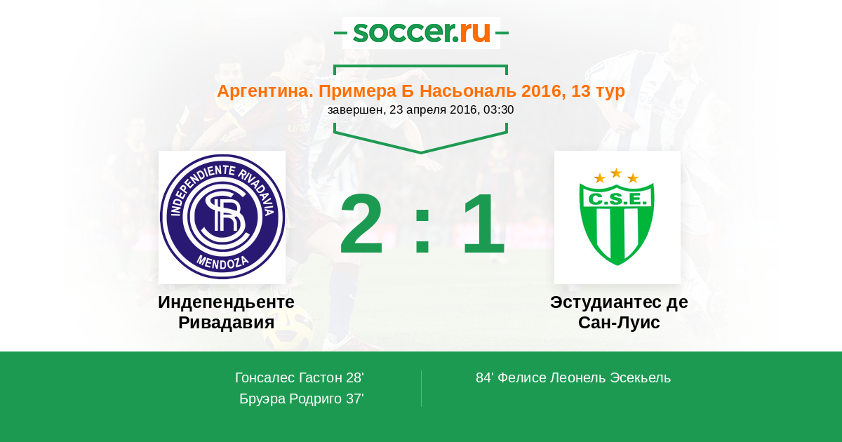 Индепендьенте Ривадавия - Эстудиантес де Сан-Луис: обзор матча 23 апреля 2016