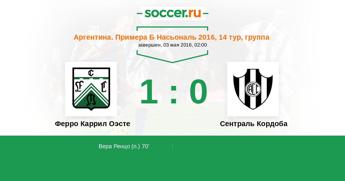 Ферро Каррил Оэсте - Сентраль Кордоба: обзор матча 3 мая 2016