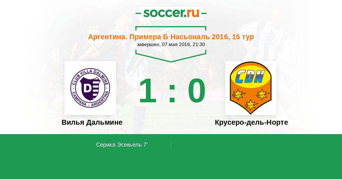 Вилья Дальмине - Крусеро-дель-Норте: обзор матча 7 мая 2016