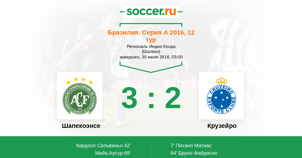 Шапекоэнсе - Крузейро: обзор матча 30 июня 2016
