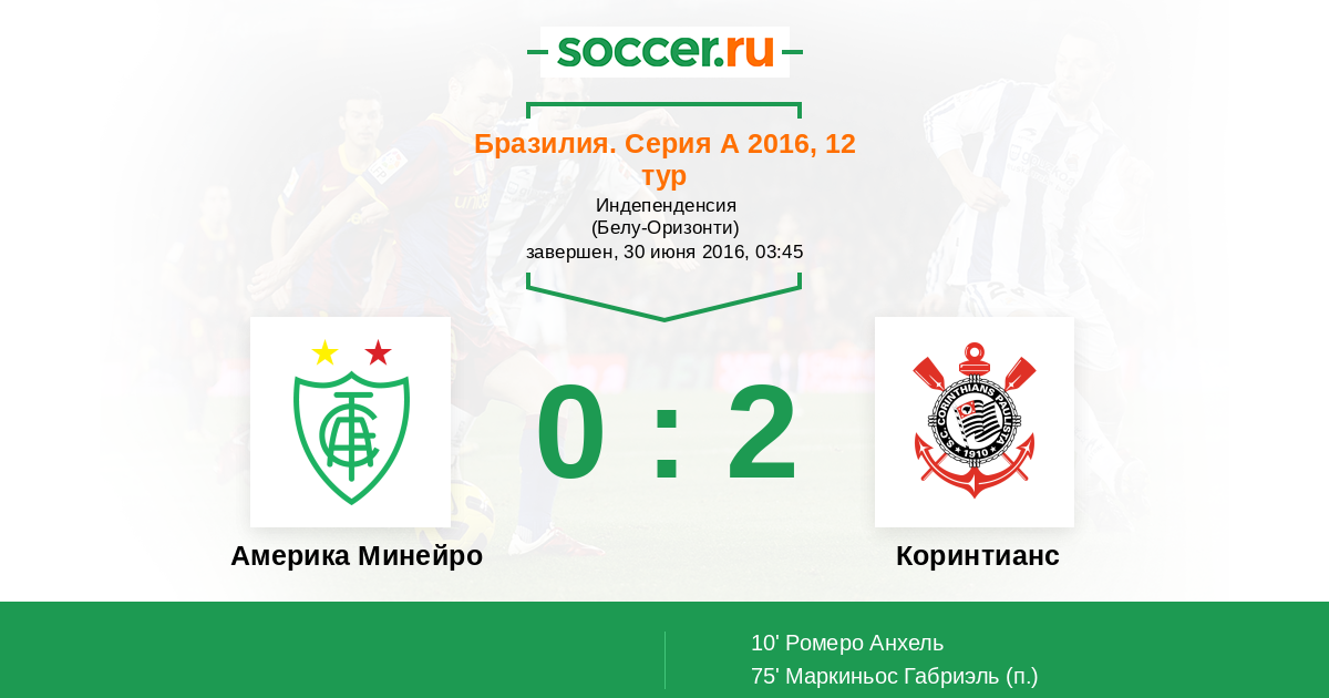 Америка Минейро - Коринтианс: обзор матча 30 июня 2016