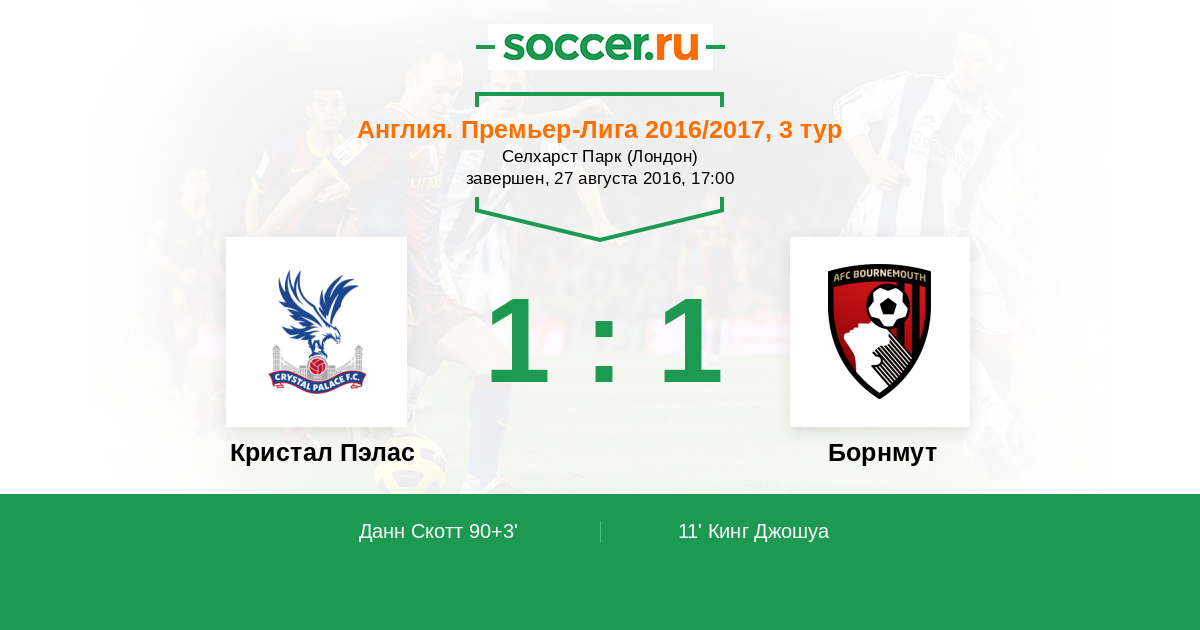 Кристал Пэлас - Борнмут: обзор матча 27 августа 2016