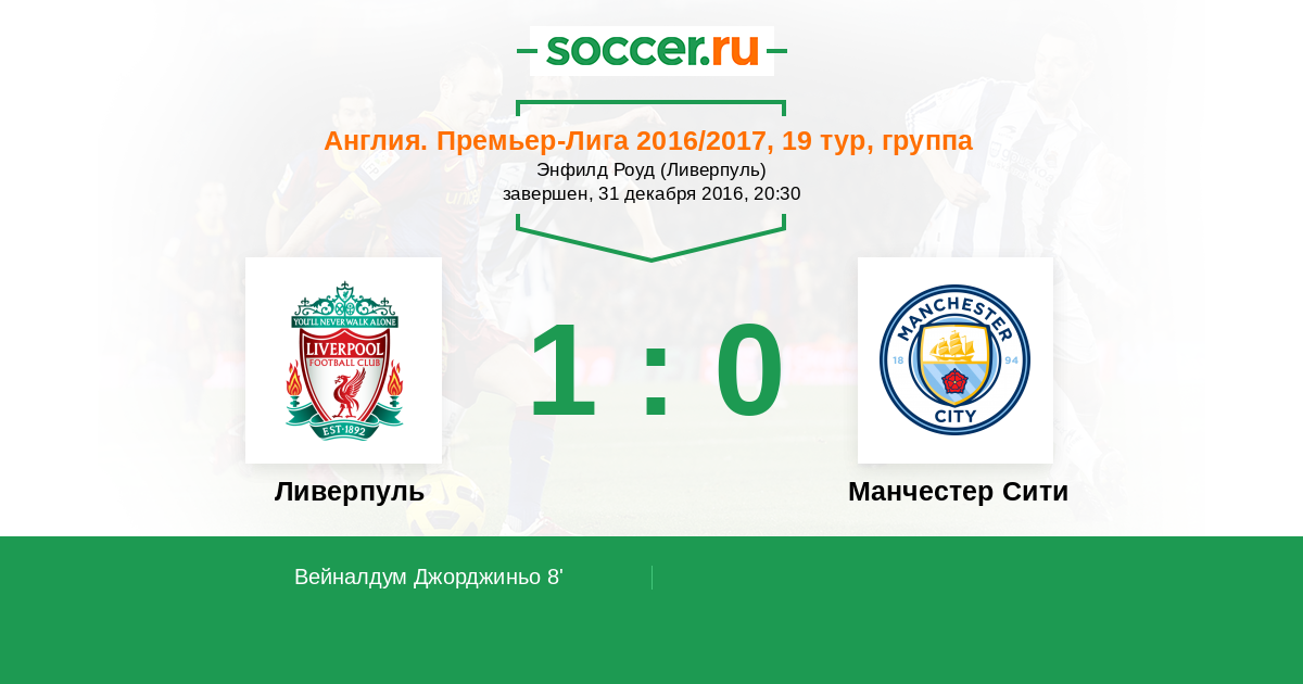 Ливерпуль - Манчестер Сити: обзор матча 31 декабря 2016