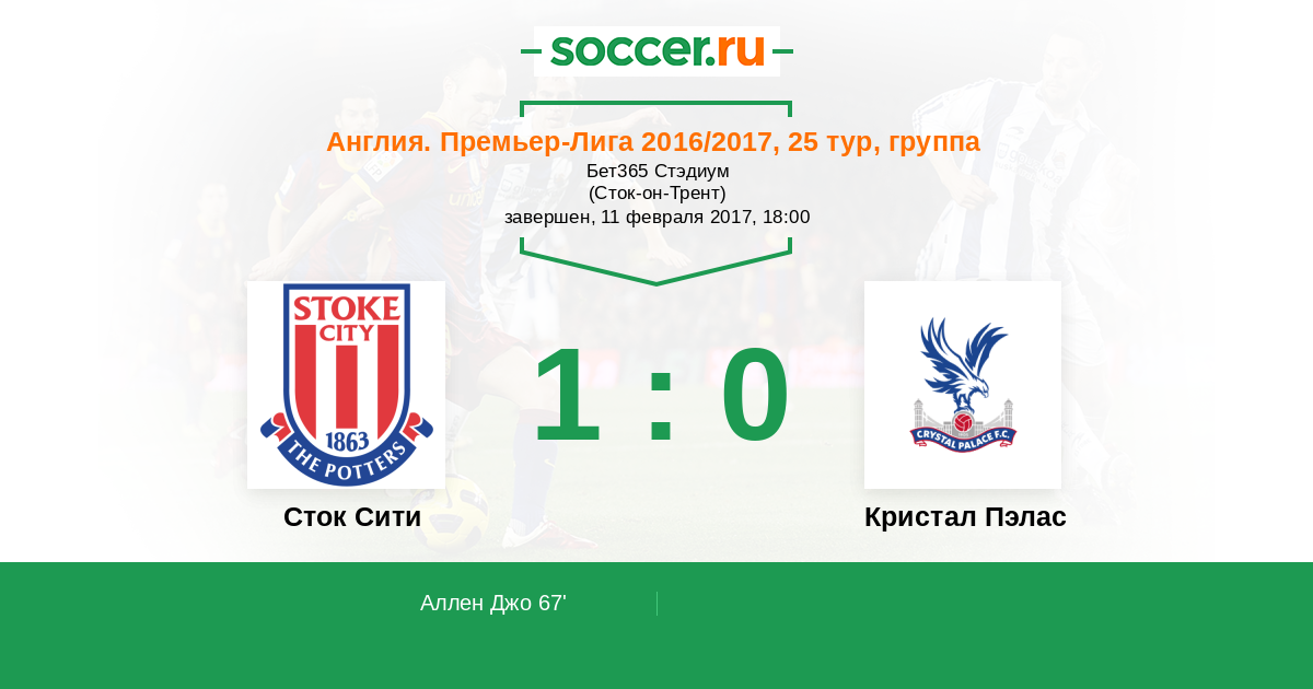 Сток Сити - Кристал Пэлас: обзор матча 11 февраля 2017