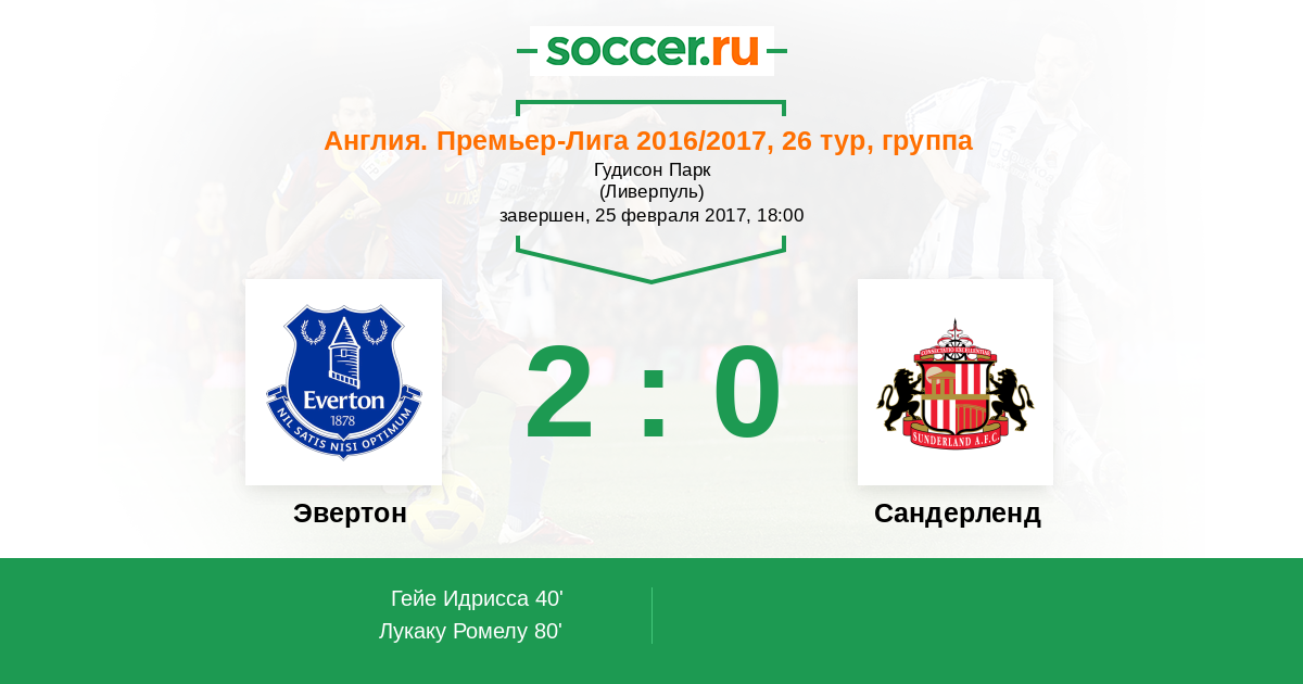 Эвертон - Сандерленд: обзор матча 25 февраля 2017