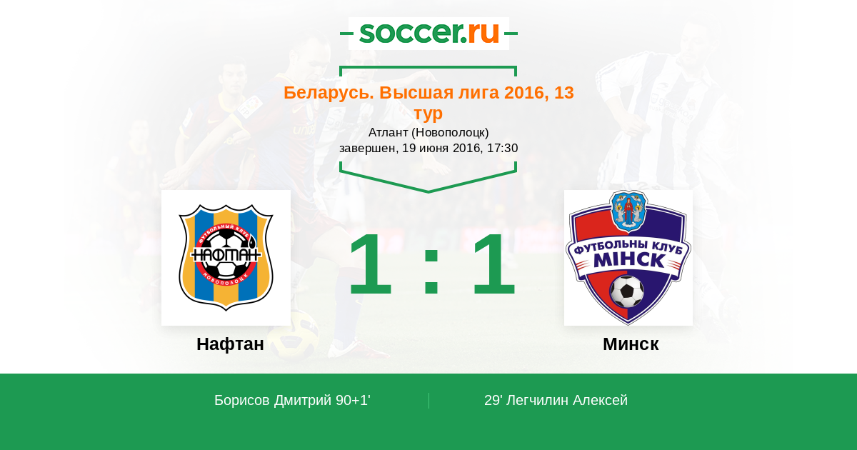 Нафтан - Минск: обзор матча 19 июня 2016