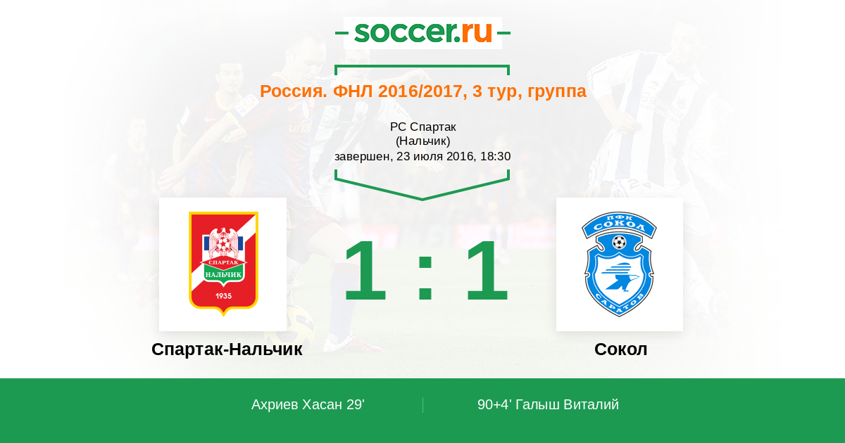 Спартак-Нальчик - Сокол: обзор матча 23 июля 2016