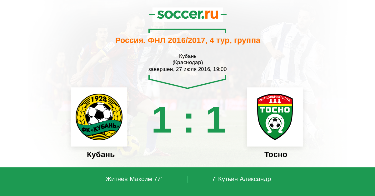 Кубань - Тосно: обзор матча 27 июля 2016