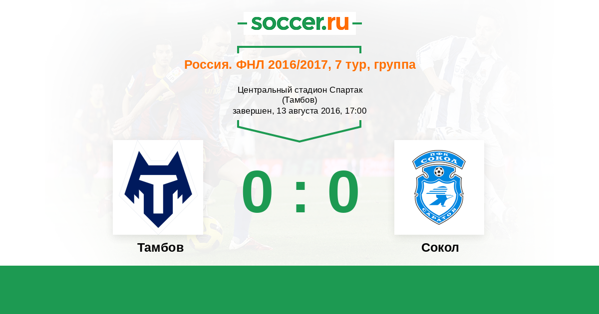 Тамбов - Сокол: обзор матча 13 августа 2016