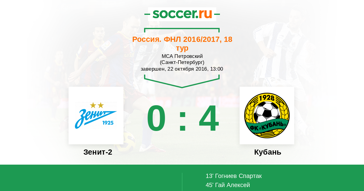 Зенит-2 - Кубань: обзор матча 22 октября 2016